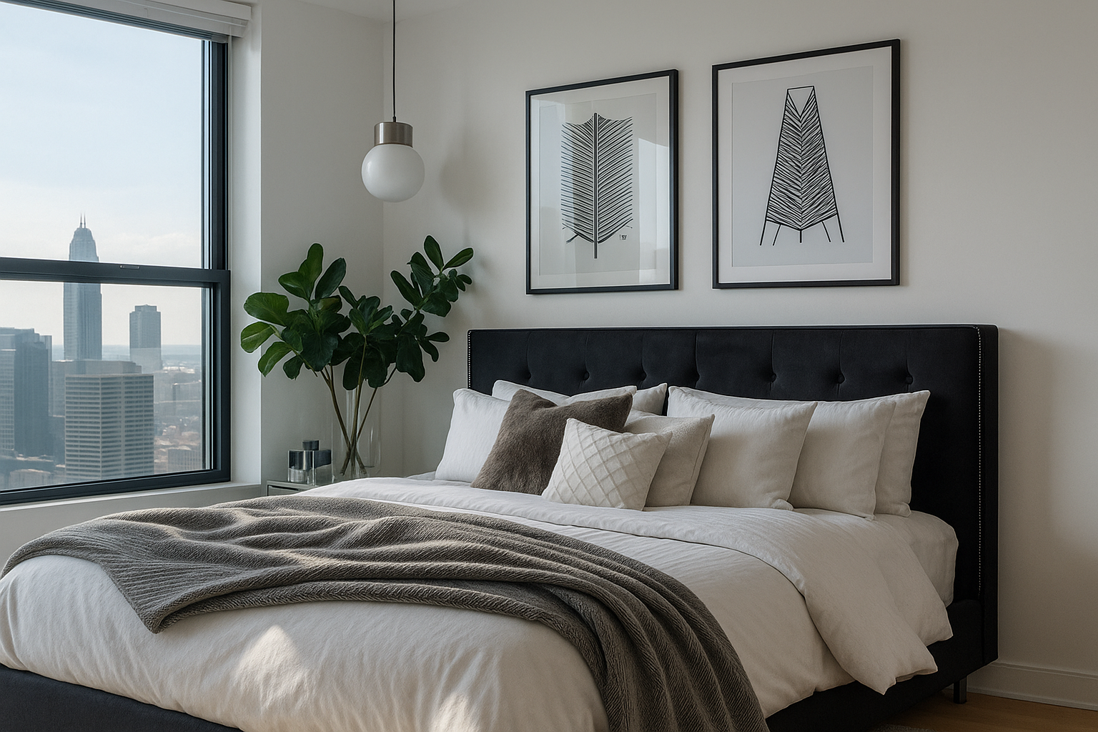A bold blend of modern elegance and city edge—think rich textures, sleek finishes, and statement pieces.