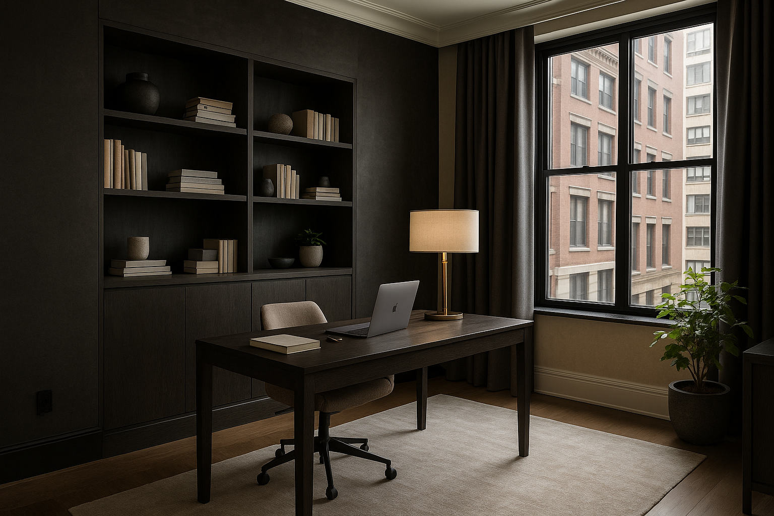 Create a functional, polished workspace within this room with expert layout planning, furniture, and organizational tools.
