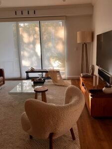 Most rentals have fixed wall colours. Work with what’s there and layer in rugs, art, and textiles first. If you can paint, choose a warm neutral colour after you’ve selected your furnishings. A fresh coat of paint makes all the difference.